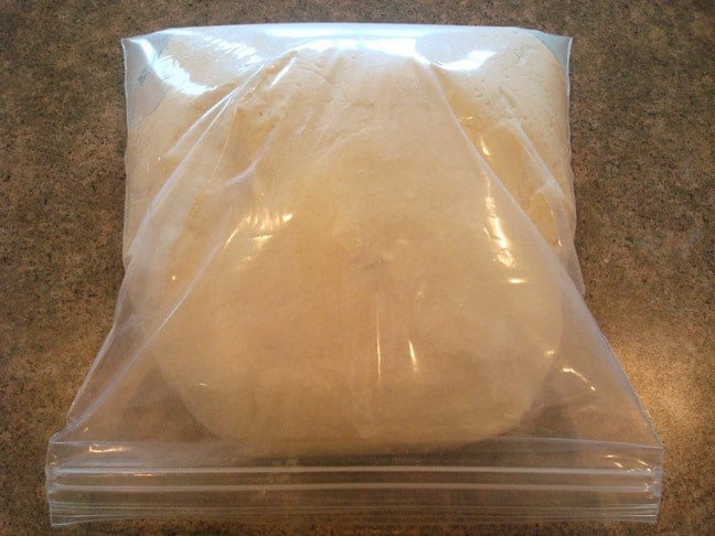 In the picture below, the dough has just been placed in the bag to rise for 30 minutes. Notice how there is a lot of slack in the bag to allow for rising.